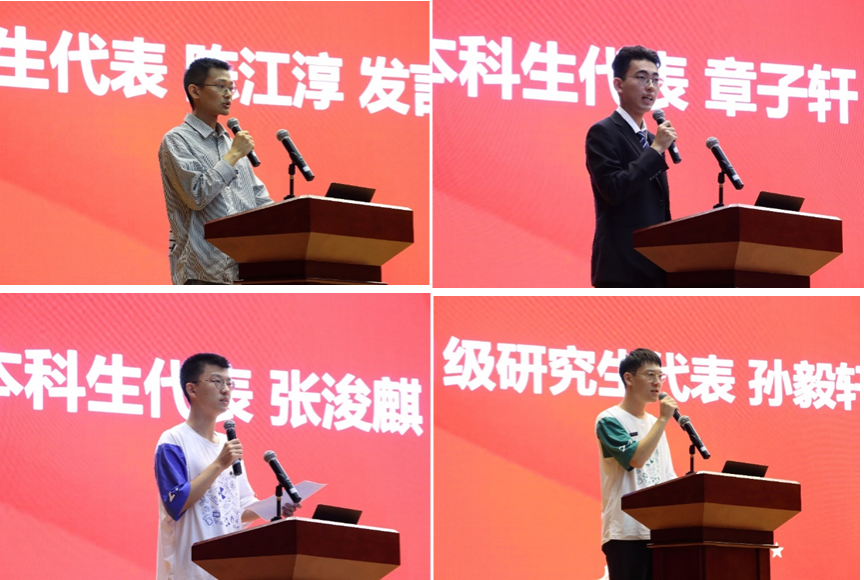 研究生导师代表吴俊涛和本科生班主任代表赵天艺以自身的亲身经历鼓励同学们践行 “德才兼备,知行合一”的校训,不断精进学业,充实自己的学识,同时不忘培养自己的兴趣爱好,在北航拥有一个丰富多彩的生活。