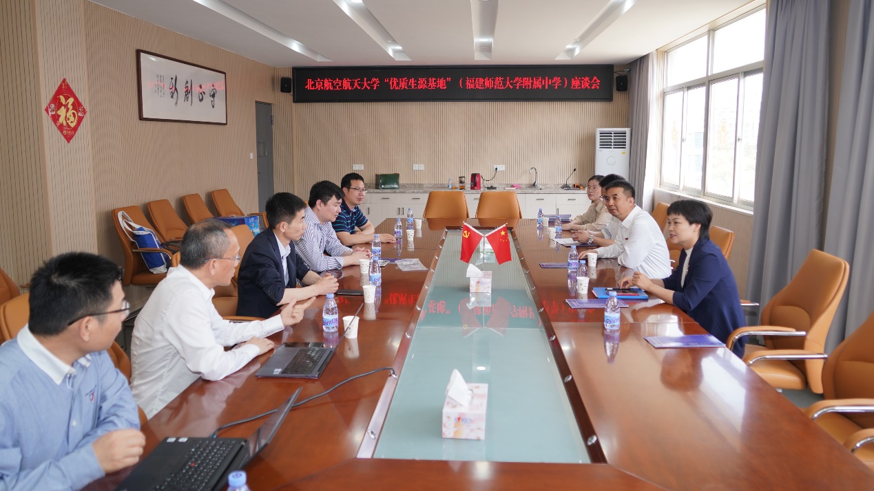 17日下午,招生组一行前往我校优质生源基地福建师范大学附属中学调研交流,福建师范大学附属中学党委书记吴永清、校长温青等主要负责同志出席了会议。座谈会上,黄瑞勇分享了中国中学和中国大学多维度人才培养大数据。福建师范大学附属中学是北航老校长沈元先生的母校,沈元学院副院长孙玉泉特别介绍了北航沈元学院建院历史及人才培养相关情况。福建师范大学附属中学党委书记吴永清介绍了师大附中办学理念、学生培养等方面的特色做法,双方还就进一步推进优质生源基地合作、文化建设等方面进行了深入交流和探讨。