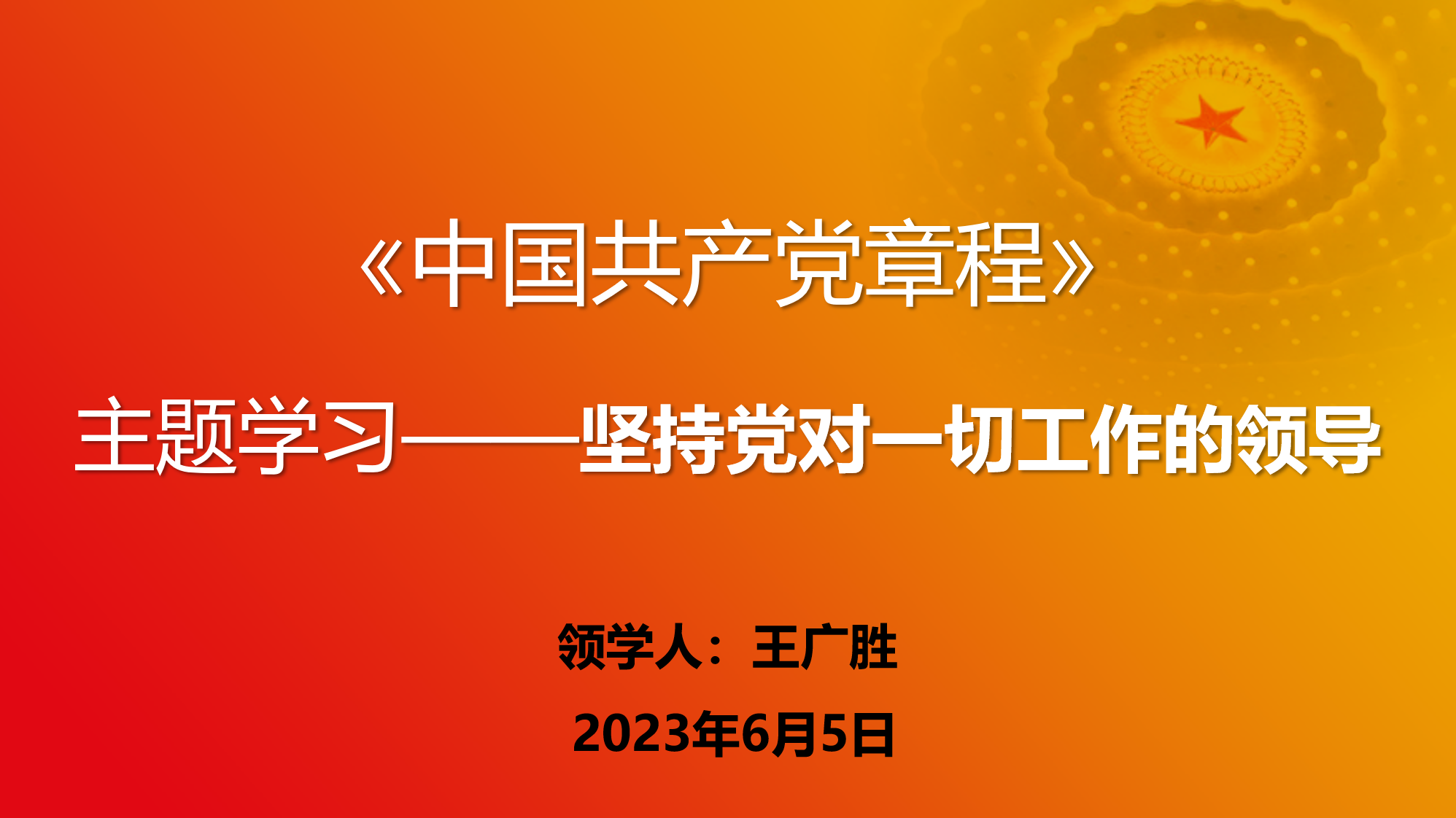 会上,太阳成集团官方网站副院长王广胜围绕“中国共产党领导是中国特色社会主义最本质的特征、坚决维护习近平总书记党中央的核心、全党的核心地位、完善坚持党的全面领导的制度、提高党把方向、谋大局、定政策、促改革的能力和定力”四个方面展开,把学习贯彻党章与学习贯彻党的二十大精神结合起来,与学习贯彻习近平新时代中国特色社会主义思想结合起来,与学习贯彻习近平总书记重要讲话和指示精神结合起来。他表示,要自觉学习党章,遵守党章,维护党章,切实把党章落实到位,奋力谱写社会主义现代化新征程的壮丽篇章。