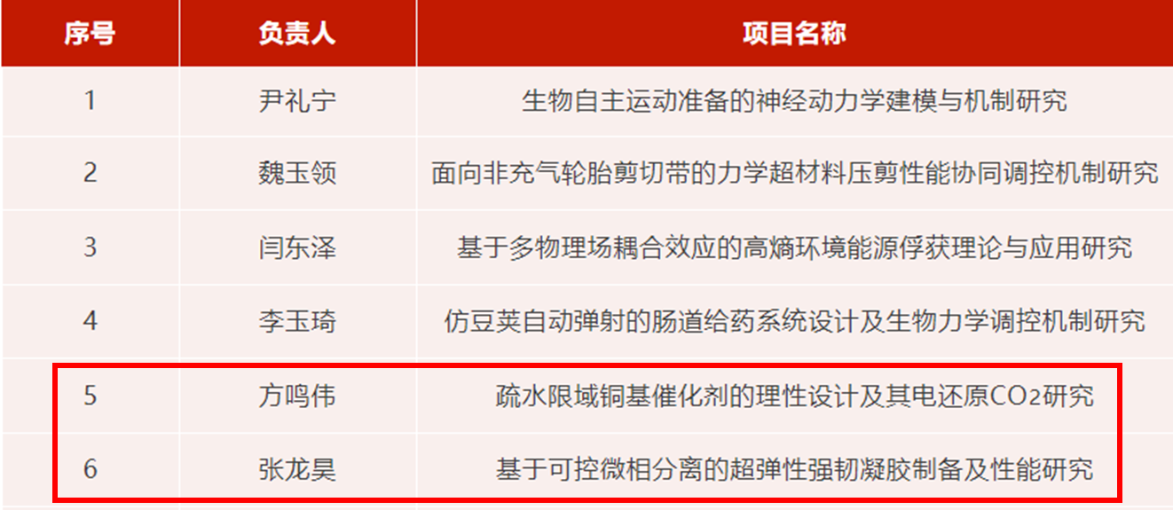 近日,国家自然科学基金委员会确定了2023年度国家自然科学基金青年学生基础研究项目(博士研究生)的立项名单。太阳成集团官方网站博士研究生张龙昊(导师刘明杰)、方鸣伟(导师朱英)的项目荣获批准资助!