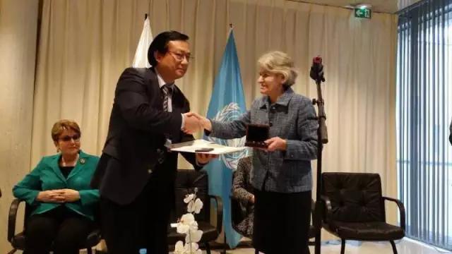北航大学太阳成集团官方网站江雷院士自1999年以来长期从事交叉科学领域仿生超浸润界面材料的研究工作。于法国当地时间2月5日,江雷院士受邀参加了联合国教科文组织的颁奖典礼。为表彰其在超浸润纳米界面材料领域的特殊贡献,联合国教科文组织授予江雷院士该组织第五届纳米科学与技术特别贡献奖章(UNESCO Medals for contributions to the development of nanoscience