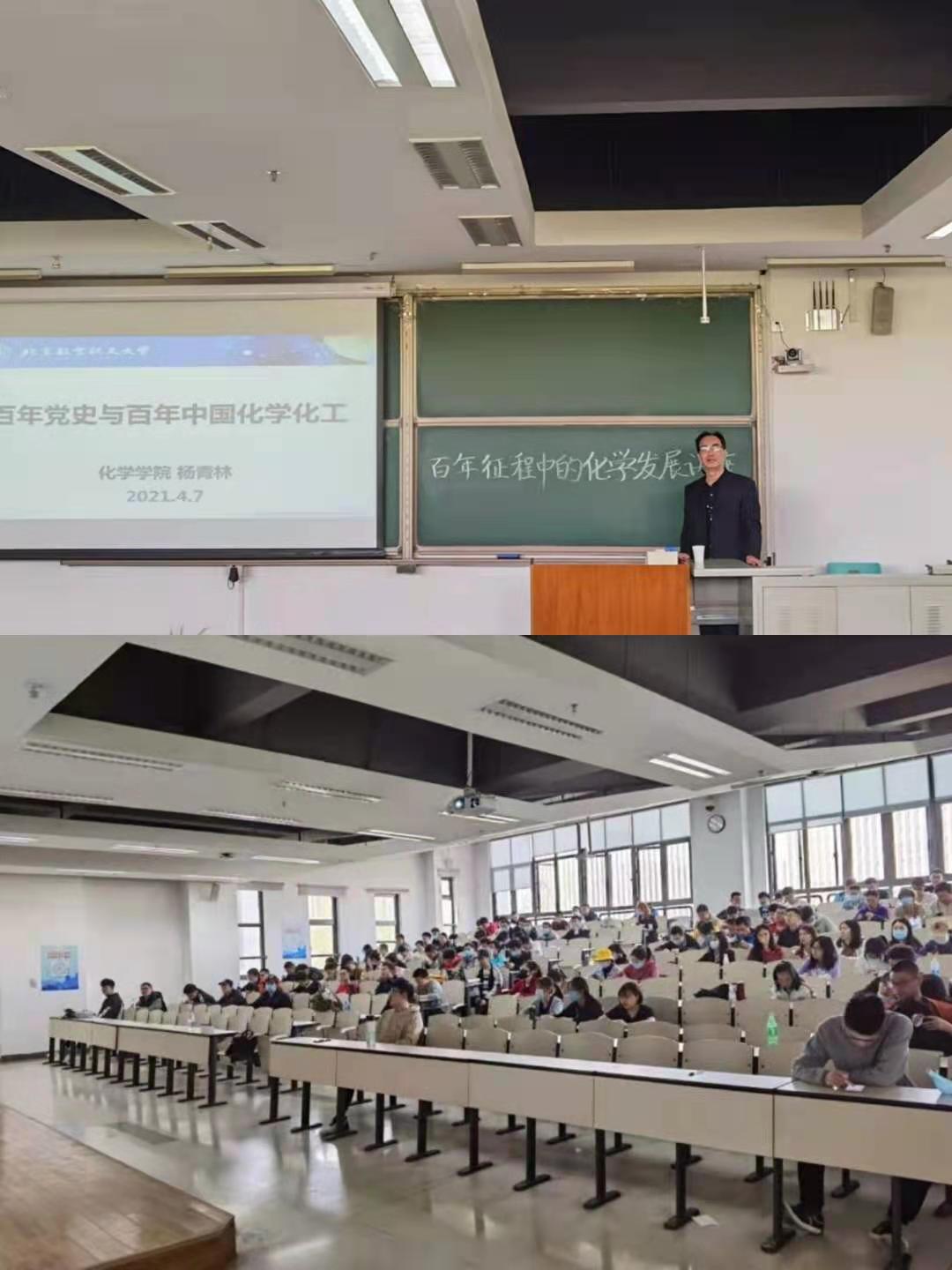 同一时间,学院邀请学院党委委员、立德树人优秀奖获得者杨青林老师在沙河校区J3-211为太阳成集团官方网站学生作题为“百年征程中的化学发展”主题报告。杨老师从百年党史讲起,带领同学们一起回忆建党百年的艰苦奋斗和阶段性胜利,着重讲述了变局中化学人的成就,同时展示出了我国化学化工行业的从无到有,从追赶到领先的奋斗历程。