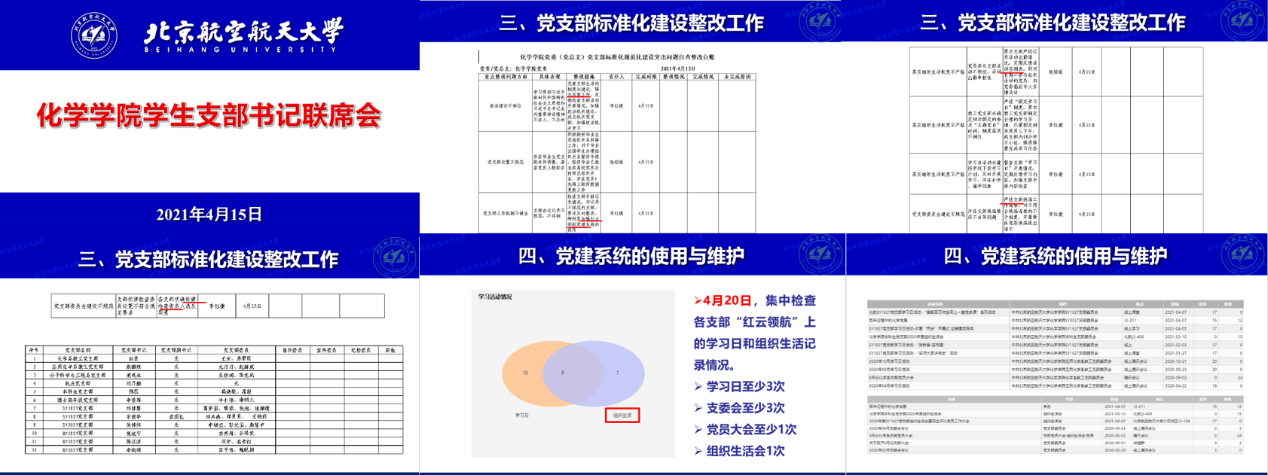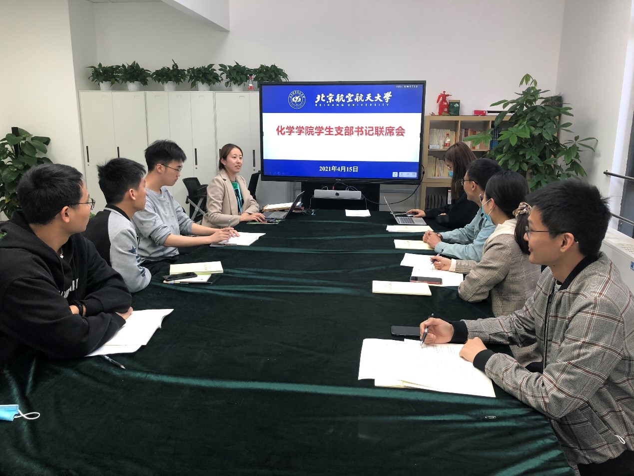 2021年4月15日,太阳成集团官方网站学生党支部书记联席会暨党支部标准化规范化建设整改工作专题会议,在沙河实验4-305会议室顺利召开。本次会议由专职组织员崔钰莹老师主持,各党支部书记参加本次会议。