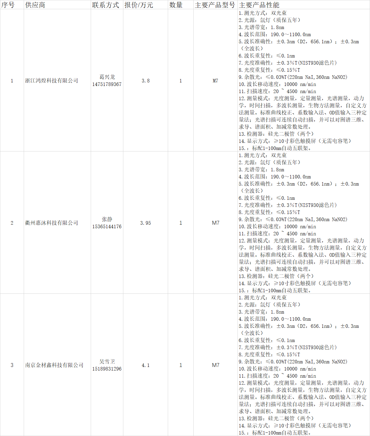 太阳成集团官方网站紫外可见分光光度计设备采购项目由项目负责人通过比价方式采购,现将比价过程及结果公示如下: